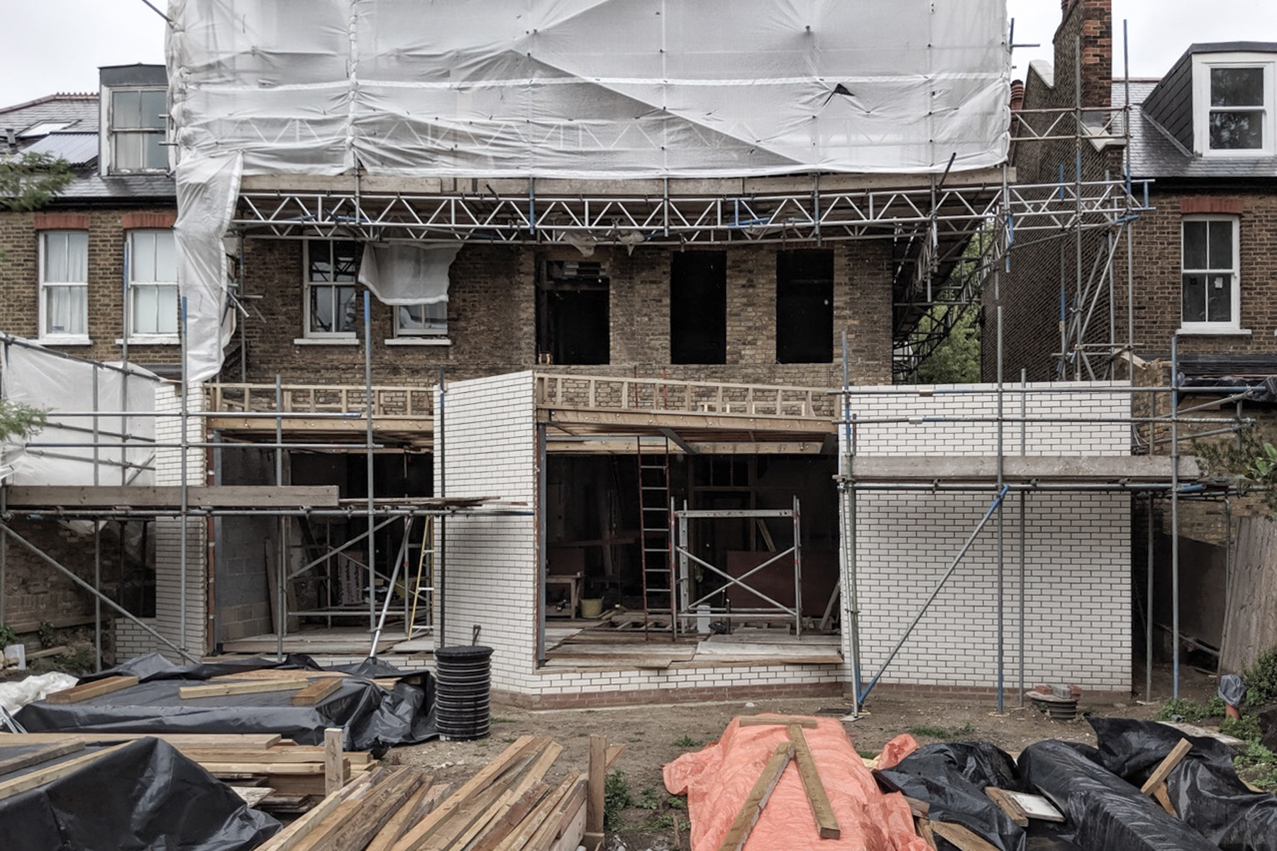 View of rear garden from boardwalk towards new extension